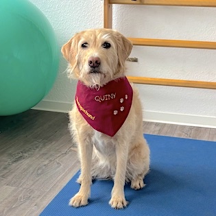 Mit im Team ist meine Labradoodle-Hündin Quiny, die als ausgebildeter Therapiehund viel Freude in den Patientenbetrieb bringt 🐾